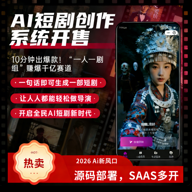抓住千亿短剧市场,1句话生成整部短剧,最低10 分钟出爆款成片,小白也能运营的AI短剧系统开售